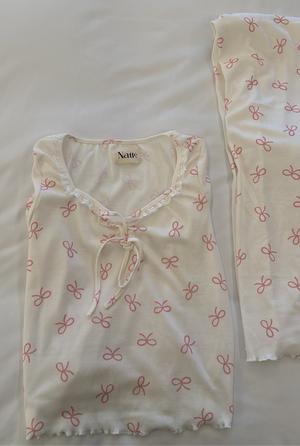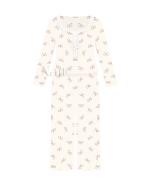 Soft to the touch and full of charming details, this two piece set is made for quiet mornings and cozy nights. With delicate ruffles, lace accents, and a pretty bow finish it’s designed to feel as sweet as it looks.