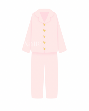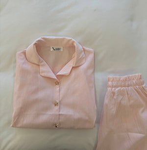 Embrace calm elegance with Roselle de Mer a tender blend of softness, femininity, and golden charm. With its relaxed silhouette and delicate blush tone, this two piece pajama set was designed to make you feel as beautiful as you are comfortable.