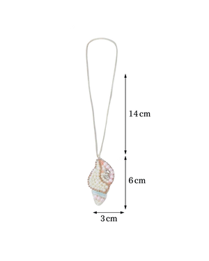 A handcrafted treasure inspired by the magic of the sea. This charm features a dreamy mix of delicate beads, sequins, and faux pearls carefully arranged to capture the shimmer of ocean waves. Accented with soft leather details and a coastal color palette, it’s the perfect addition to bags, pouches, or keychains for a fairytale touch.