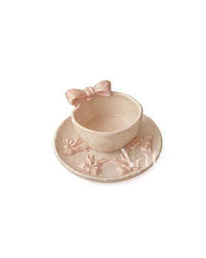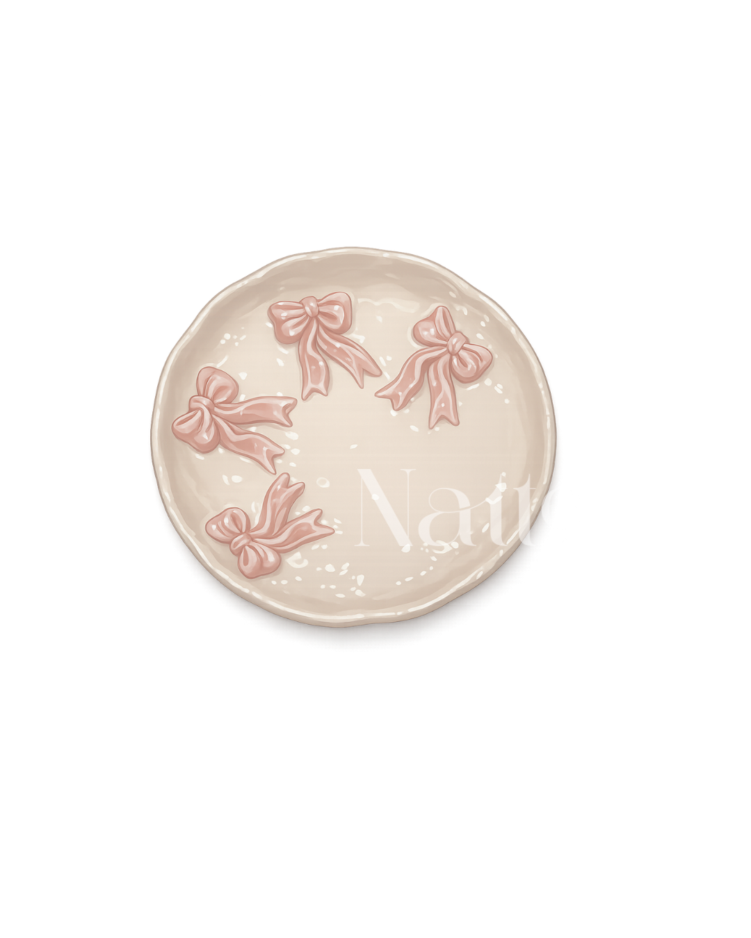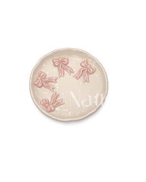 A charming ceramic plate embellished with delicate ribbon details. Perfect to pair with your favorite cup or to serve sweet treats. soft, cute, and designed to elevate cozy moments.