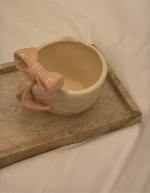 A sweet ceramic cup adorned with a delicate ribbon touch. Perfect for cozy drinks and charming moments soft, cute, and made to gift